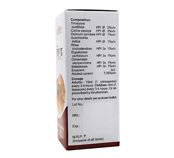 Bakson’s Dengue Aid is a thoughtfully crafted homeopathic remedy designed to alleviate the debilitating symptoms of Dengue fever. This natural formulation targets body aches, fever, fatigue, and rashes, helping your body recover with gentle and effective support. Its unique blend of potent ingredients promotes healing, boosts immunity, and enhances overall resilience.